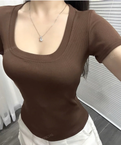 Áo thun nữ cổ vuông – thanh lịch và quyến rũ